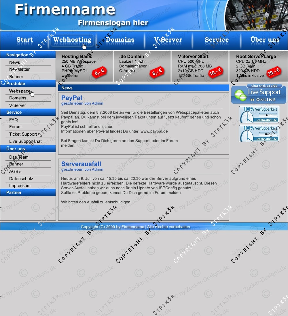 Hinweis: Hierbei handelt es sich nur um das Design, eine Anpassung an ein CMS-System ist nicht im Preis enthalten!
