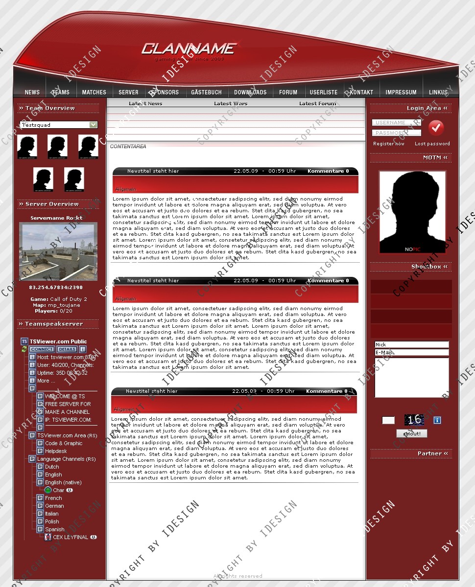 Du hast noch keinen Account auf ClanDesigns.de? Dann kannst du dich hier kostenlos registrieren!