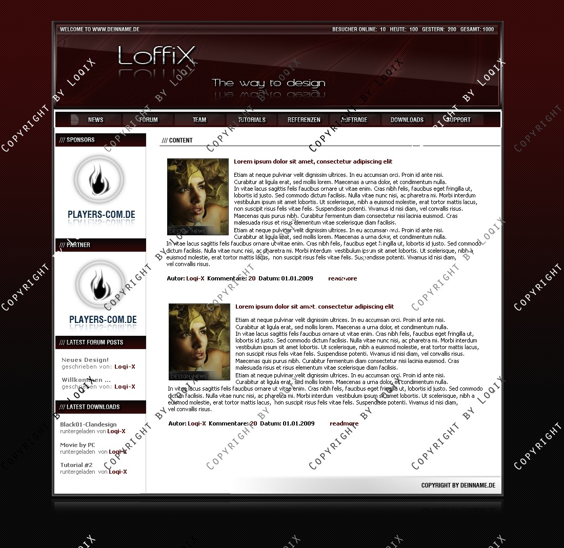 Hinweis: Hierbei handelt es sich nur um das Design, eine Anpassung an ein CMS-System ist nicht im Preis enthalten!