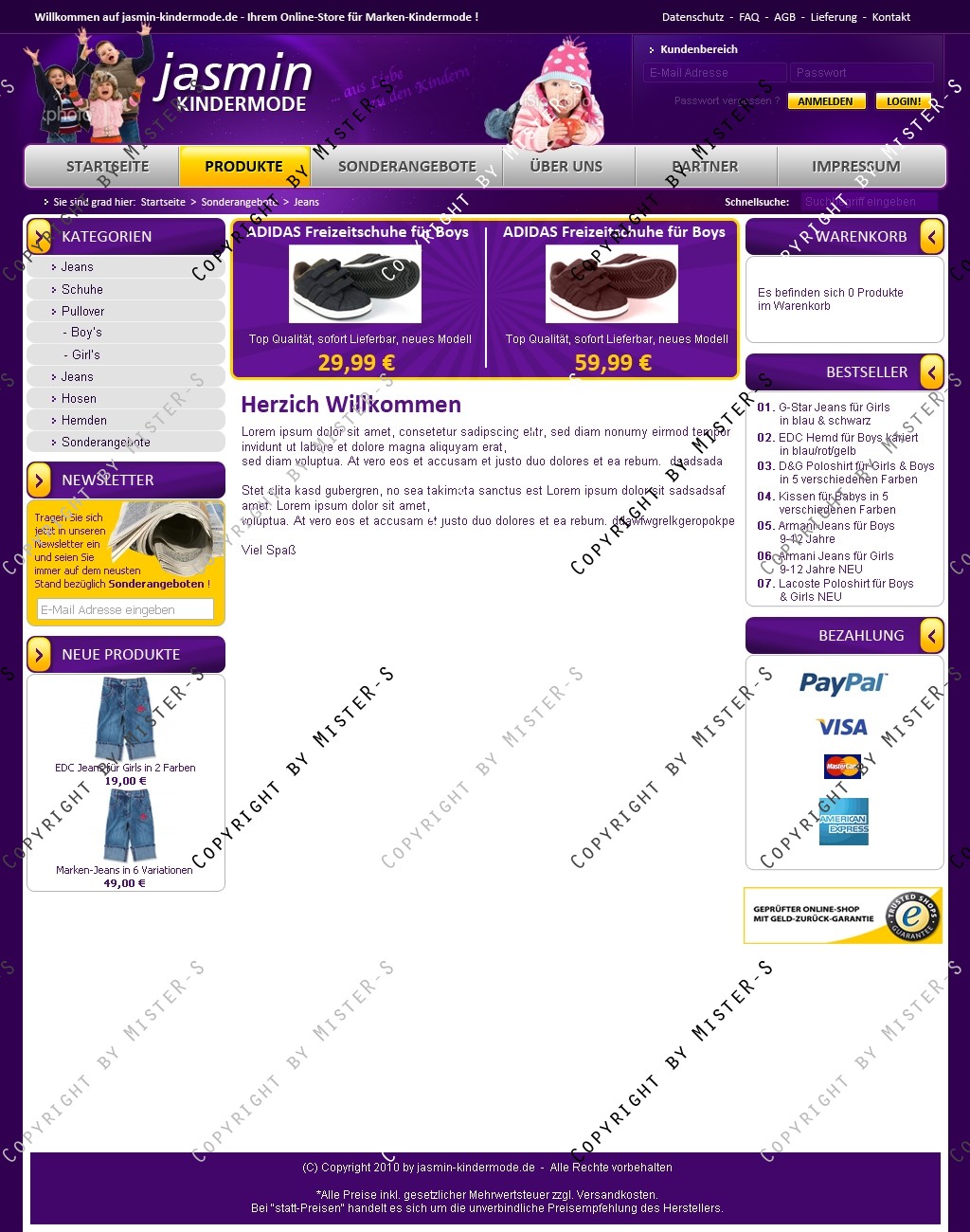 Hinweis: Hierbei handelt es sich nur um das Design, eine Anpassung an ein CMS-System ist nicht im Preis enthalten!