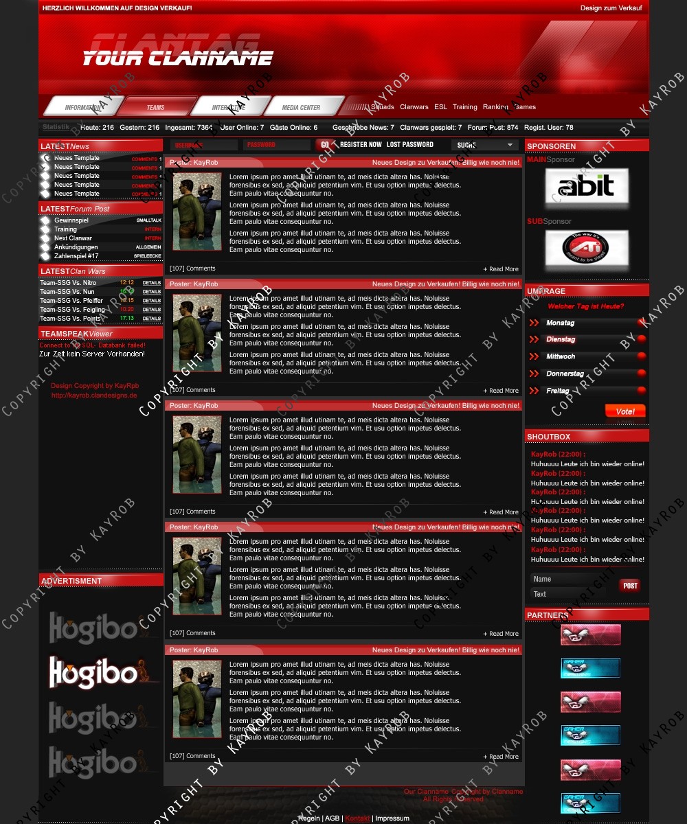 Dieses Clandesign darf OHNE genehmigung von mir Robert Erdmann nicht zum Free Download auf anderen Webadressen angeboten werde. Das weiter verschicken von Design.psd ist auch UNTERSAGT. Sollte es dies der Fall sein, werde ich Rechtliche Schritte einleiten und dies Ahnden!