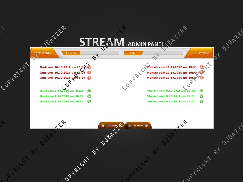Einmal die Admin Seite, die die Moderatoren/Deejays oder Generell Admins einsehen können, wo Sie die Gruß und Wunschbox auslesen können und Tracklist schreiben können, auch da, gibts eine Listener Anzeige.