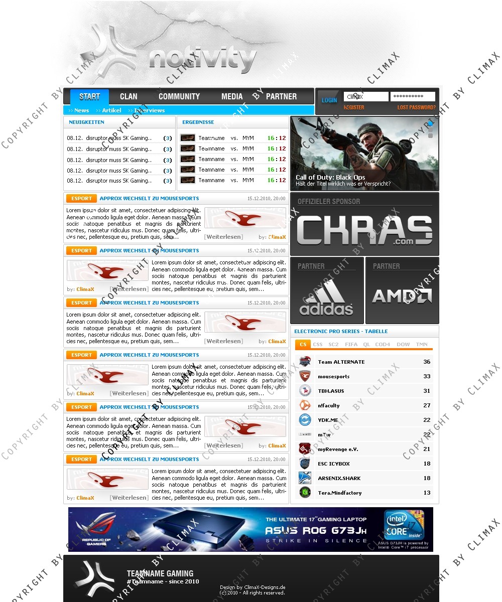 Stelle hier eine kleine Team- / Clanpage zur Verfügung. Enthalten ist nur die .PSD Datei.