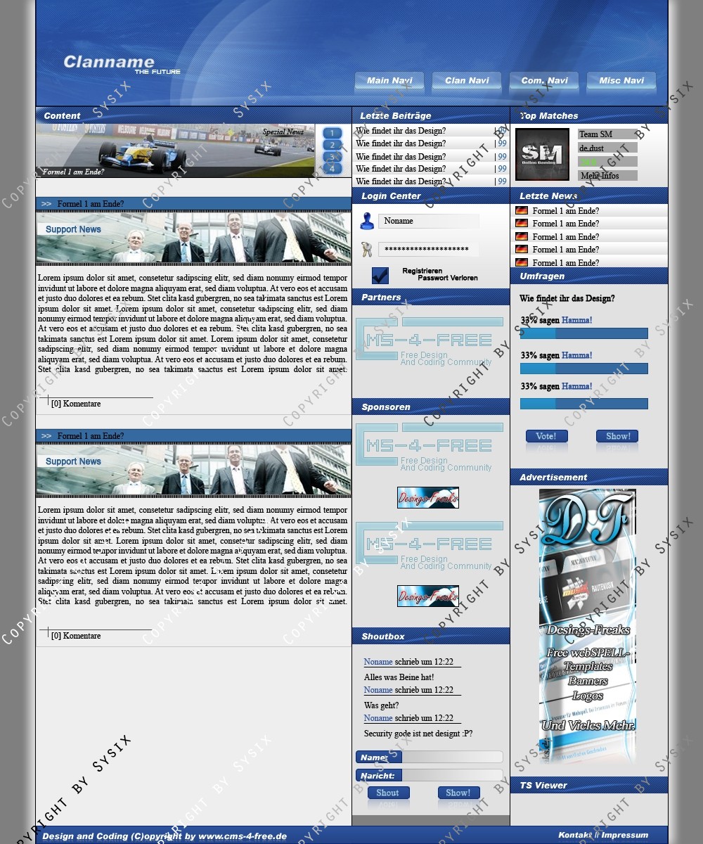 Du hast noch keinen Account auf ClanDesigns.de? Dann kannst du dich hier kostenlos registrieren!