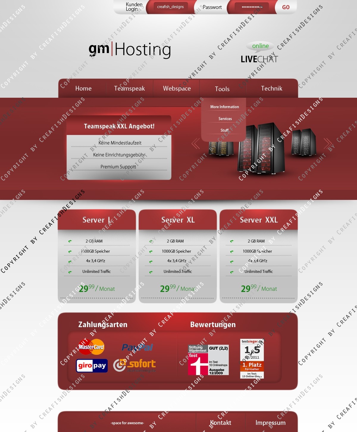 Ein schlichtes Hosting Design.