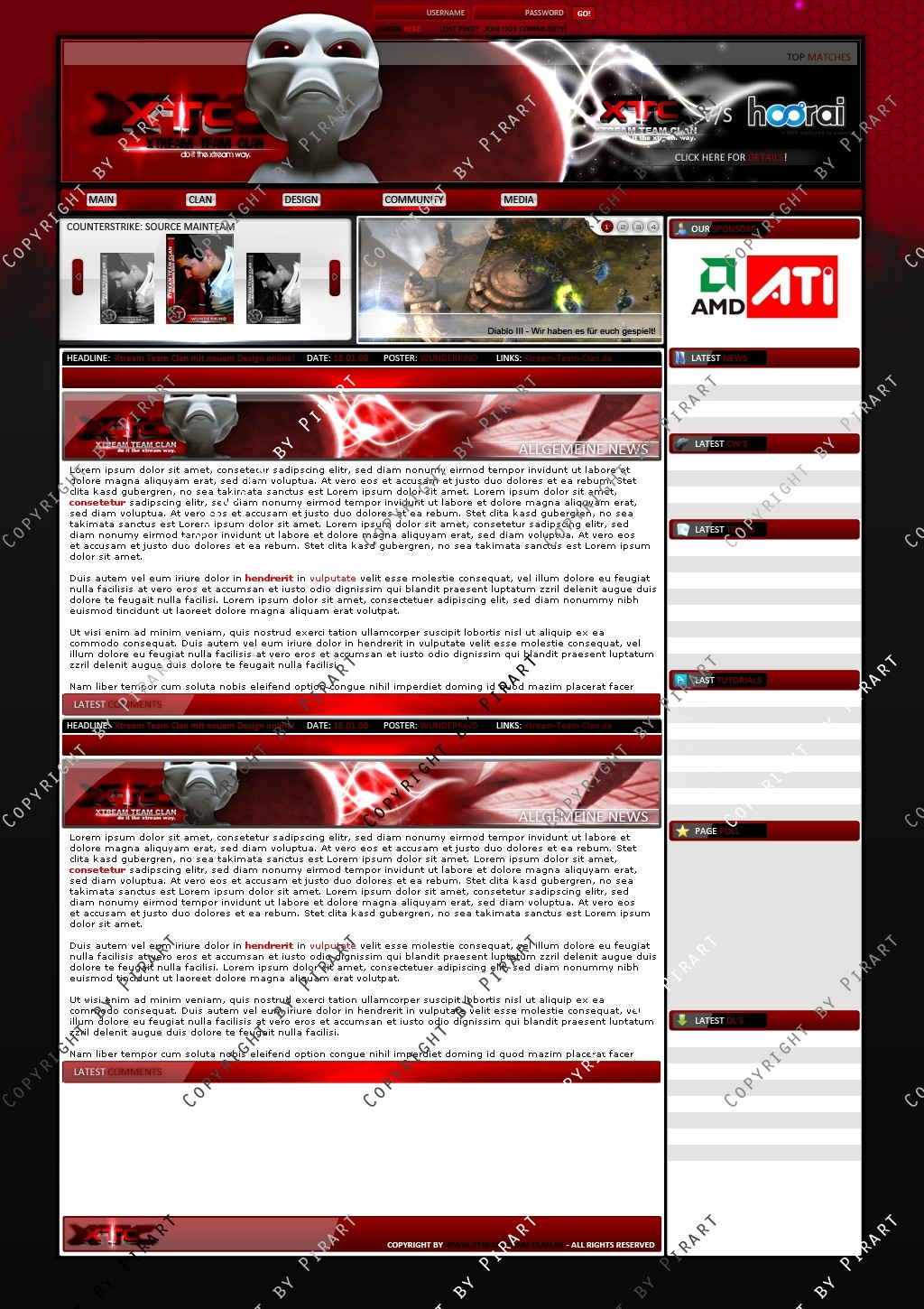 Folgendes Clan Layout wird von mir verkauft. Sollte ursprünglich einmal an Webspell angepasst werden, sollte also kein großer Aufwand sein. Es wurde noch nicht gesliced. Der Preis steht im Verhältniss zum Arbeitsaufwand, der von mir geleistet wurde.