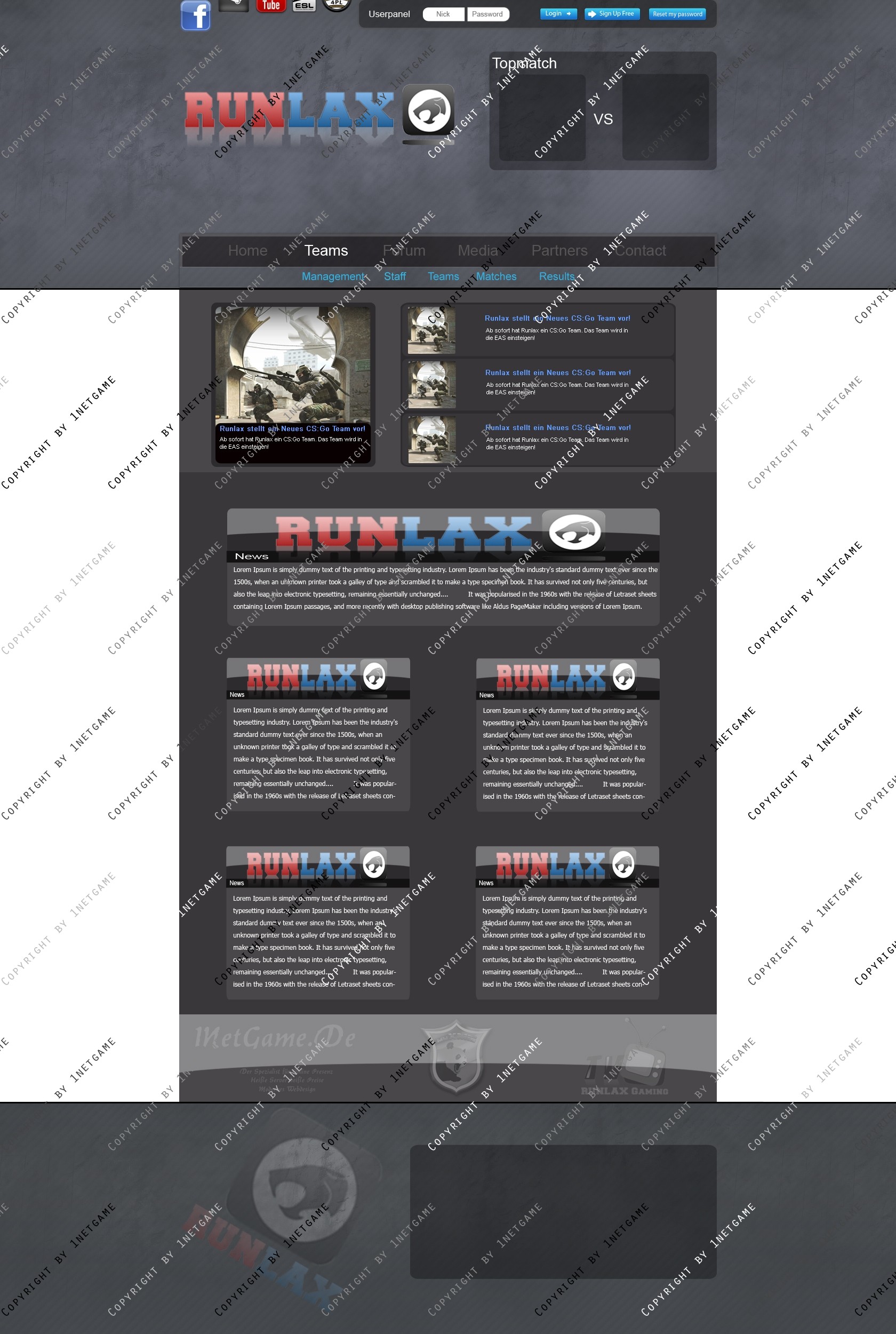 Ich verkaufe folgendes Clan Layout mehrmals oder exklusiv zu einem für mich angemessenen Preis-/Leistungsverhältnis! Verkauft werden lediglich die .psd-Dateien des jeweiligen Templates, das bedeutet also, dass kein Code bzw. Slicing im Preis inbegriffen ist.