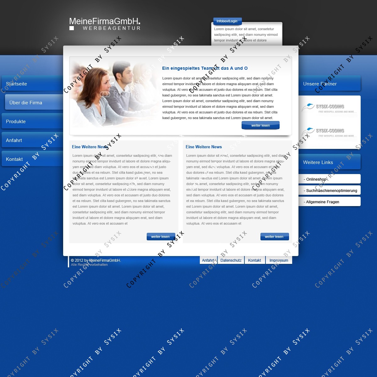 Hinweis: Hierbei handelt es sich nur um das Design, eine Anpassung an ein CMS-System ist nicht im Preis enthalten!