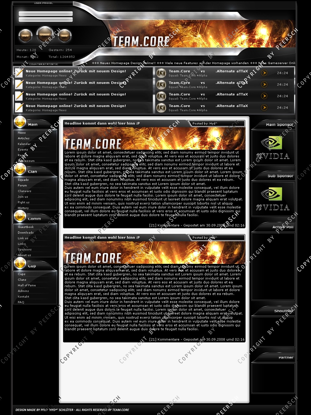 Was Sie hier kaufen ist lediglich die PSD Datei, gerne kann ich es Ihnen gegen einen Aufpreis von 13€ an ein CMS Anpassen, zur Auswahl stehen hierbei: webSPELL, Clansphere, Teklab, Devilz und andere CMS auf Anfrage ohne Aufpreis.