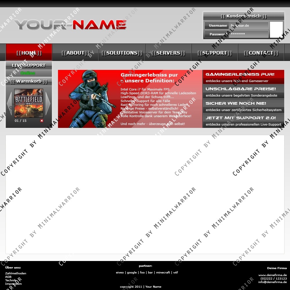 Sei der Erste und kaufe dir das Template Exklusiv um sicher zu gehen, das einzig und allein dein Hosting dieses Top-Design benutzt. Denn anhand des Designs kann man schon die Qualität des Hostings erkennen.