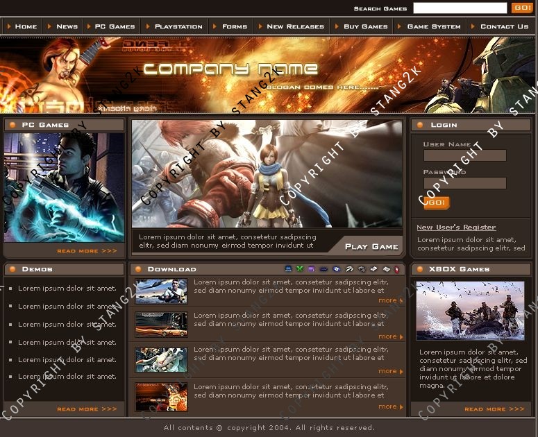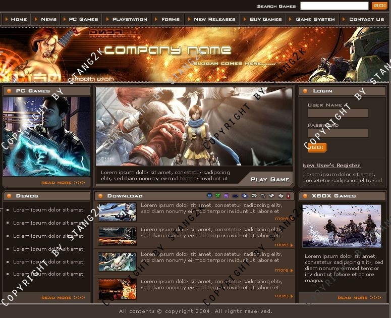Dieses Design ist optimal für Gamercommunitys oder Clans. Das Design ist in braun und kann danke der mitgelieferten PSD und der Schriftarten nach eigenen Wünschen verändert werden.