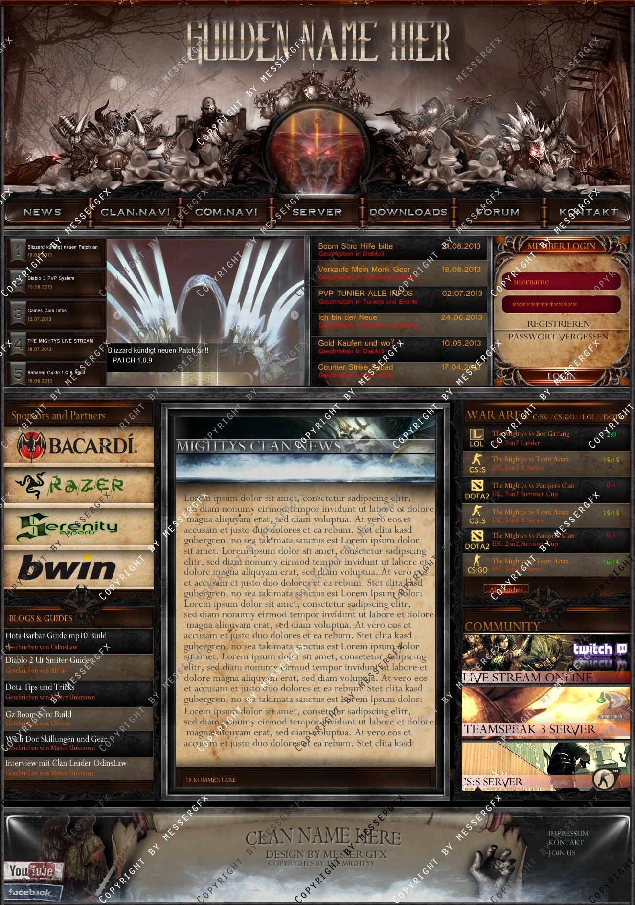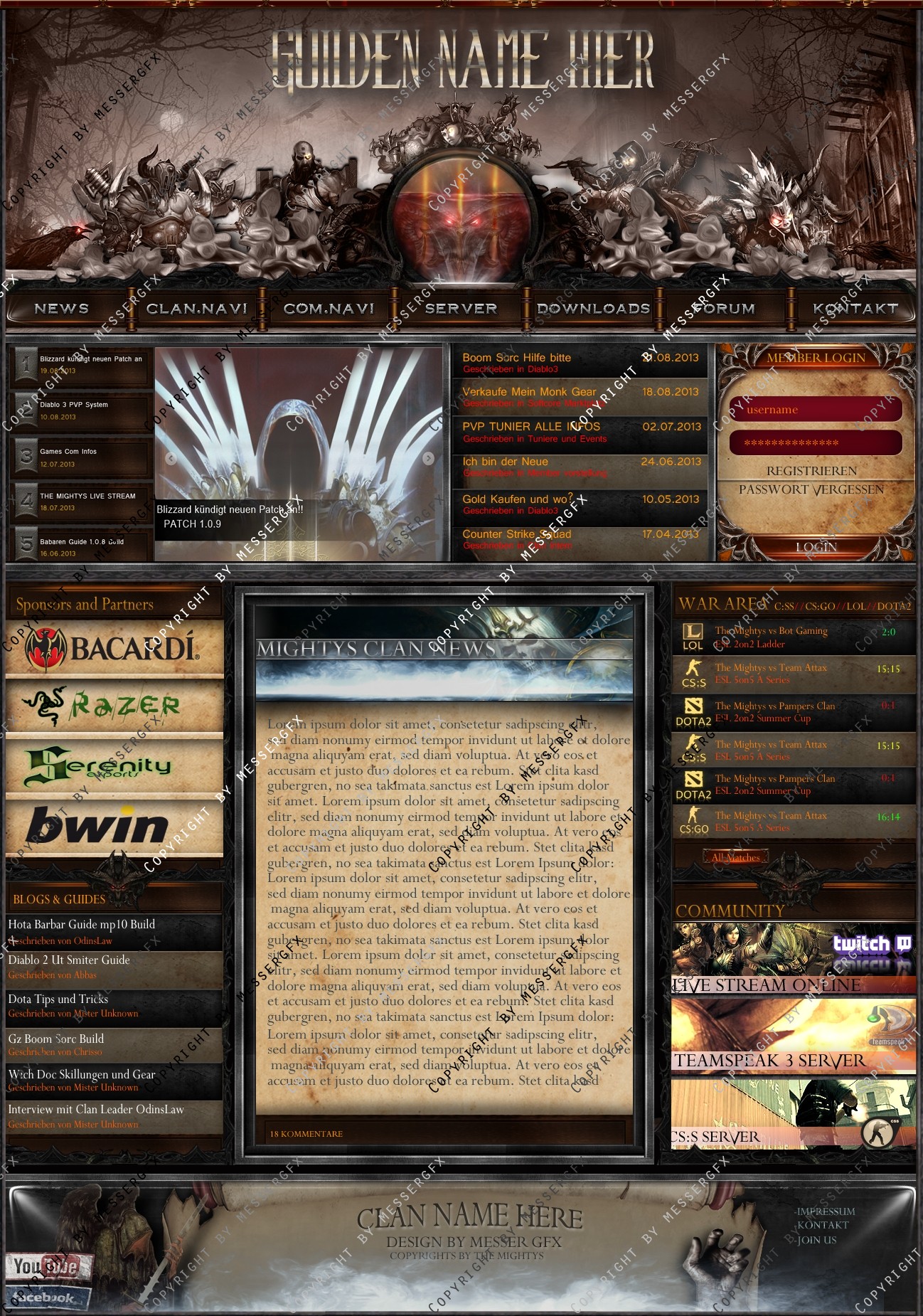 Ein Gilden Design was Wirklich gut zu Diablo 3 Gilden Passt aber es wurde auch für einen Multigaming clan ausgelegt so dass man auch matches usw eintragen kann bei weiteren fragen einfach melden