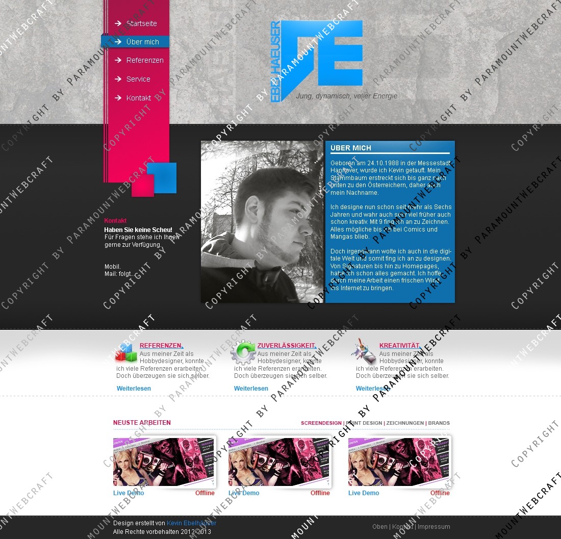 In diesem Packet erhalten Sie eine Photoshop Datei (.psd) mit einem Portfolio das vielseitig einsetzbar ist. Gedacht ist es für Mediengestalter aller Art die ein Portfolio zum Einstieg brauchen. Das Portfolio enthält auch Unterseiten wie z.B. Über Mich und Referenzen.