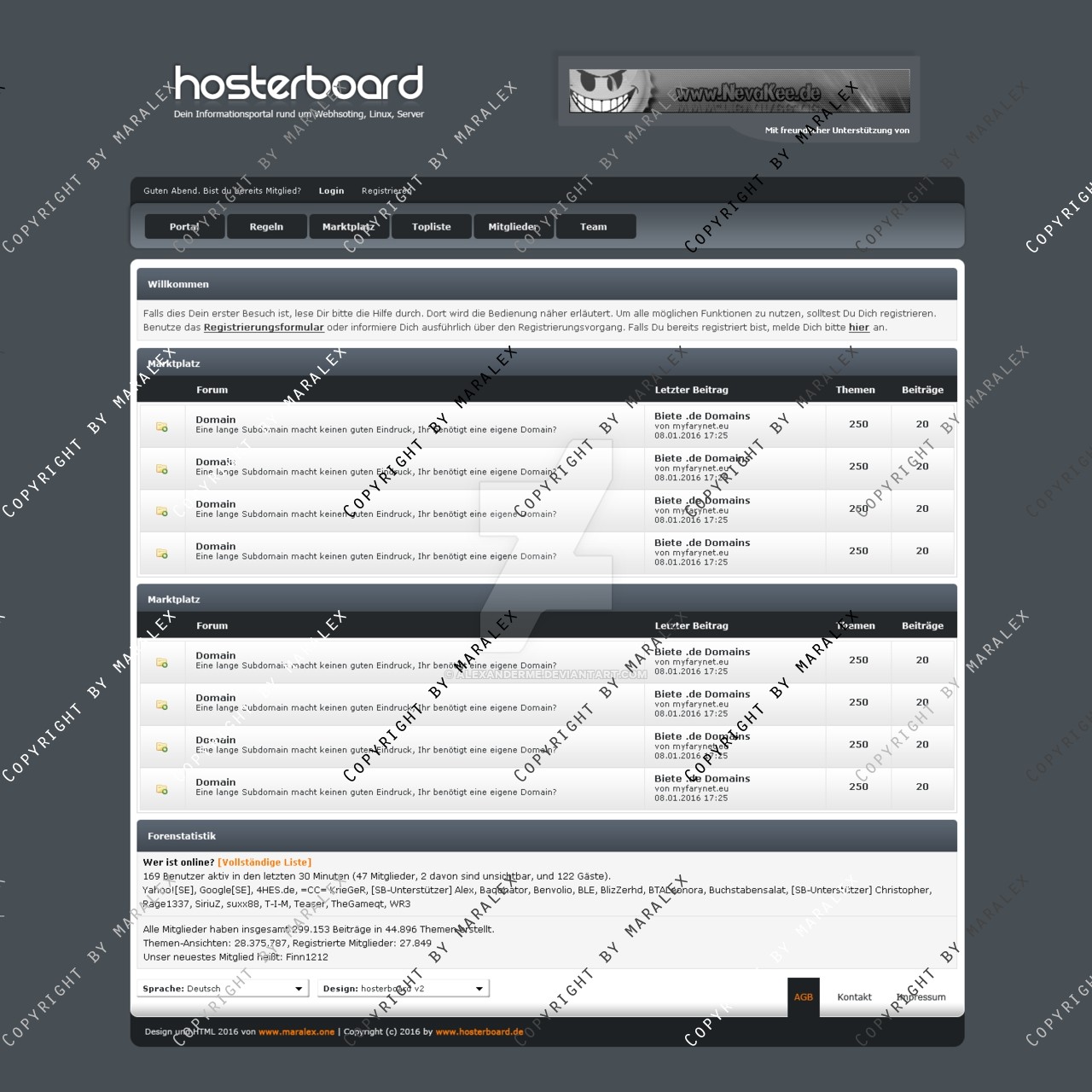 Ich verkaufe hier ein wunderschönes dunkles Layout für ein Communityforum bzw. Forum. Das ganze gibt es als .psd und direkt nach Bezahlung per Download hier.