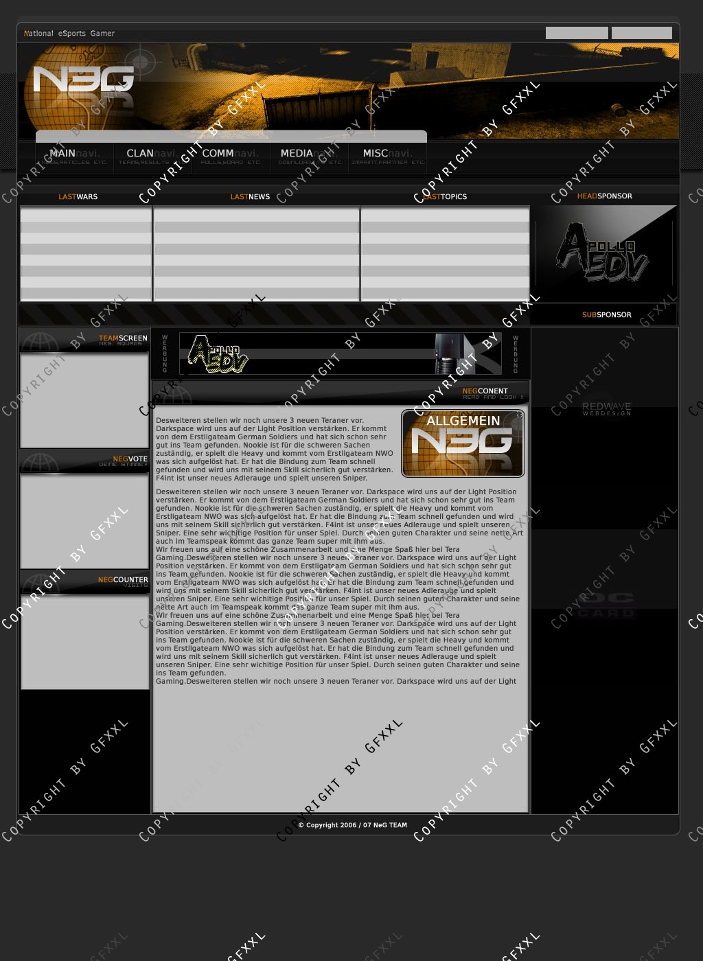 Ich stelle hiermit mein "altes" Clandesign zum Verkauf ein, er war ursprünglich für Natinal-eSports Gamer gedacht, aber aus dem Auftrag is nix geworden... deshalb hier und jetzt zuhaben!