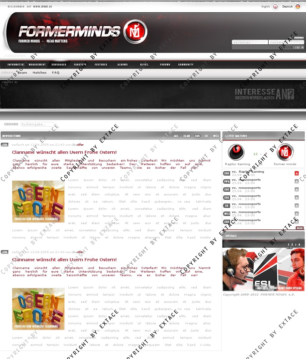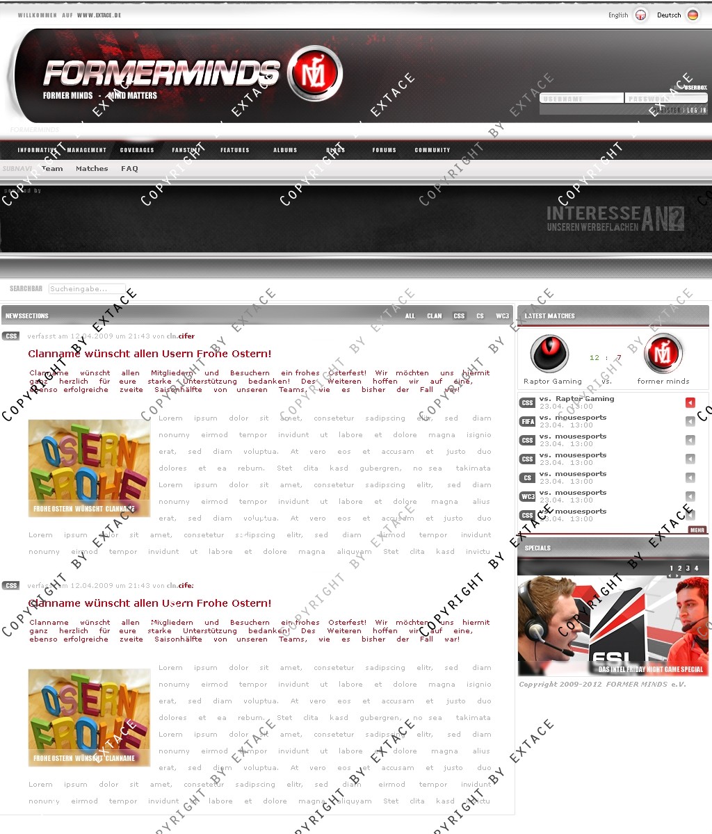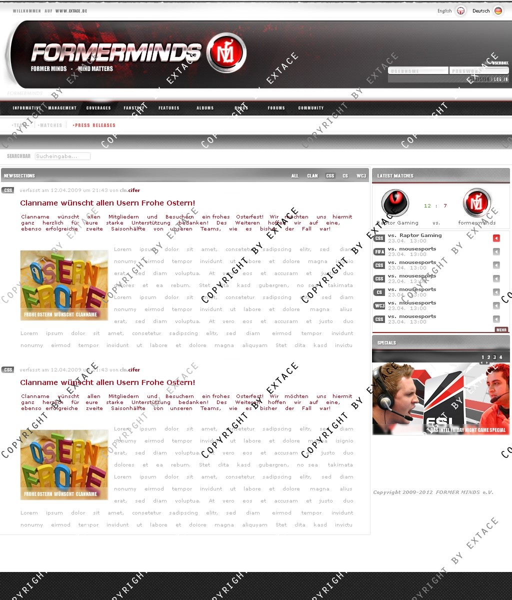 • Anpassung der Homeapage an ein CMS (webSPELL o.ä.) möglich (Zusatzkosten je nach Umfang - nur nach Absrpache)