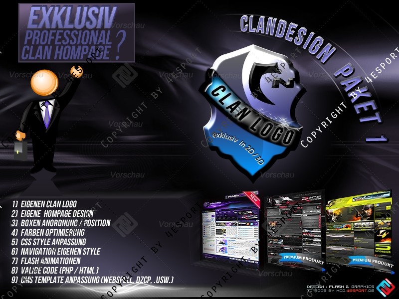 1) Eigene Clan Logo (in Wappen- Format oder Style: 2D, 3D, Flash Logo +Aufpreis)