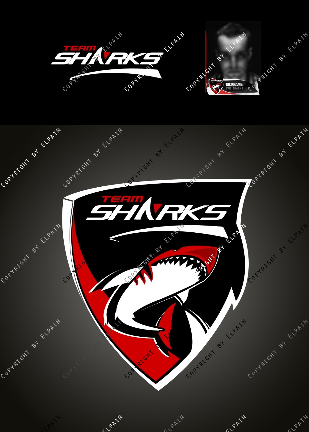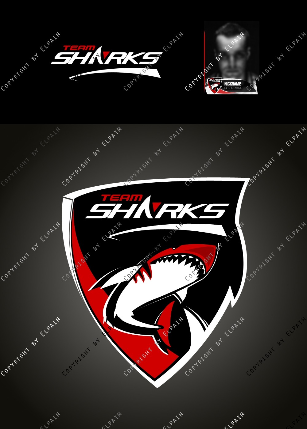 - Die .PSD Datei beinhaltet ALLE Ebenen als Formen, den original Team-Shark Schriftzug und eine kinderleichte Vorlage für den eigenen Clannamen. (Schriftarten liegen bei. S.o.)