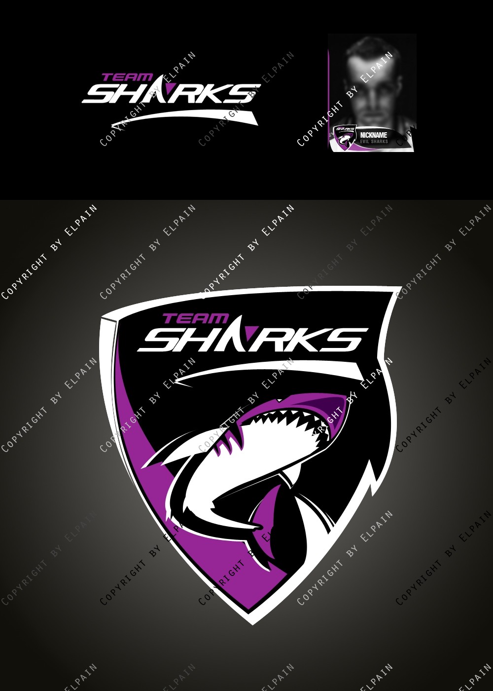 - Die .PSD Datei beinhaltet ALLE Ebenen als Formen, den original Team-Shark Schriftzug und eine kinderleichte Vorlage für den eigenen Clannamen. (Schriftarten liegen bei. S.o.)