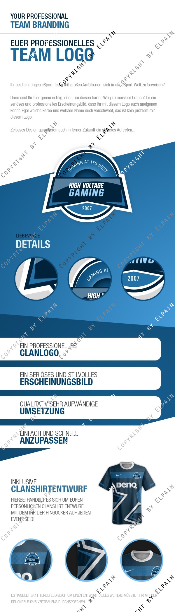 Dann könnte EUCH dieses Logopaket gefallen, denn Ihr kauft hier nicht nur ein einzelnes Produkt, sondern ein Logo, einen passenden Spielerrahmen sowie einen Entwurf für eigene, individuelle Clanshirt.