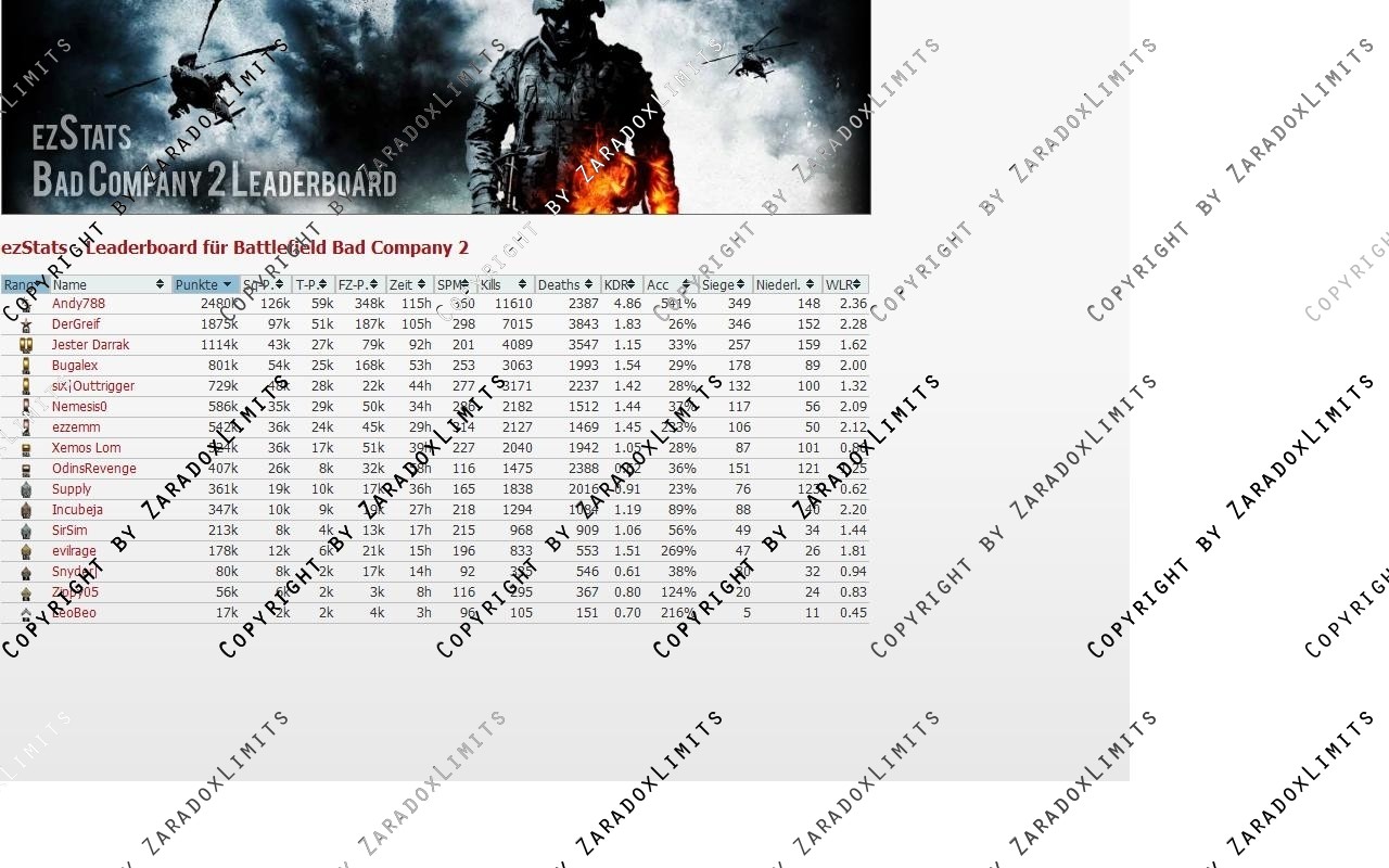 ezStats (BFBc 2) - Leaderboard für deine Clanhomepage powered by ezzemm