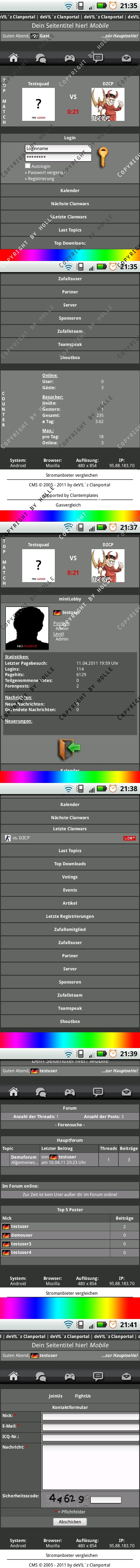 Eine spezielle Ansicht für das Forum, Squads/Teams & Gästebuch sind integriert. Außerdem ist wurde das Kontaktformular mit Join- & Fightusbereich in das "Minimenü" integriert. Des weiteren findet man beim Betreten der Seite einen Login Bereich vor, wo - nach dem Einloggen selbstverständlich ;) - eine kleine persönliche Statistik und die Neuerungen seit dem letzten Pagebesuch kompakt dargestellt werden.