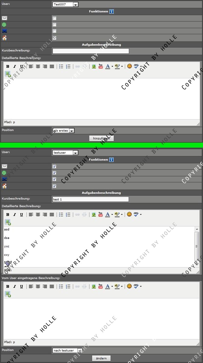 Bild 4: Oben: Formular zum eintragen einer neuen Aufgabe, Unten: Aufgabe editieren