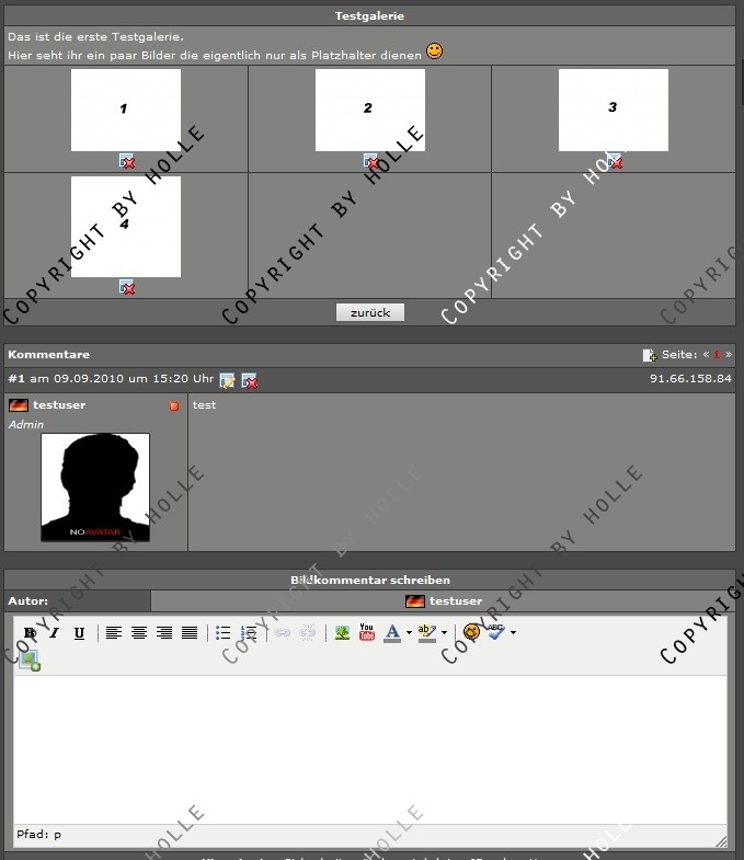 Damit man auch die Bilder eurer Galerien kommentieren kann, habe ich hier ein Addon gecodet, welches euch diese Funktion zur Verfügung stellt.