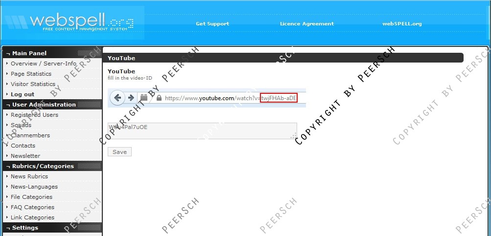 Das Video kann im gewohnten Admincenter von webSPELL geändert bzw. festgelegt werden. Eine kinderleichte Bedienung, auch sehr unerfahrene leute werden mithilfe der beigelegten Installationsanleitung mühelos dieses Addon einbinden können.