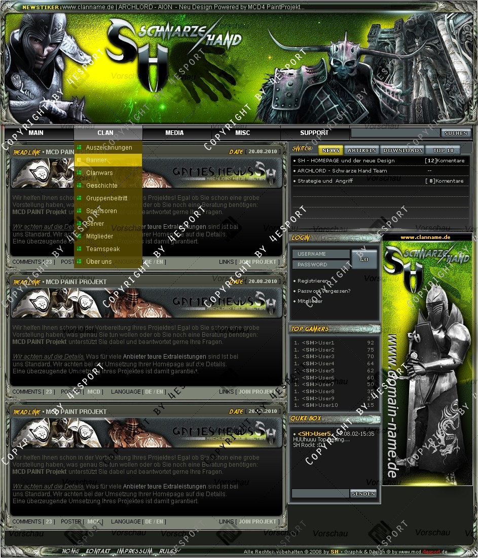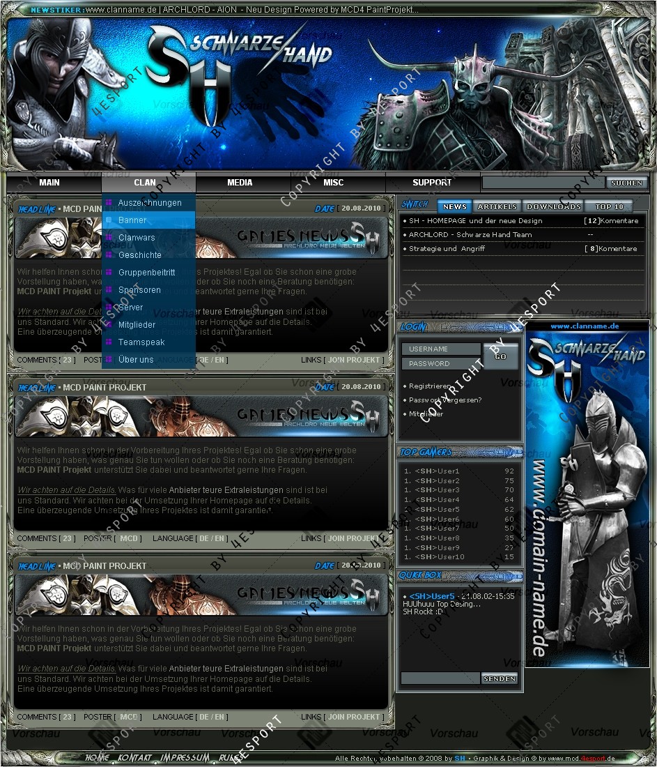 Wir können auch Ihre EXKLUSIVE Farbanpassung anfertigen bzw.: Neue LOGO CLAN NAME, Rahmen, Boxen Hintergründe, Titel-Fonts, Verlauf-Farben, Boxen Anordnung, usw....  das alles ist nur in EXKLUSIVE PREIS enthalten.