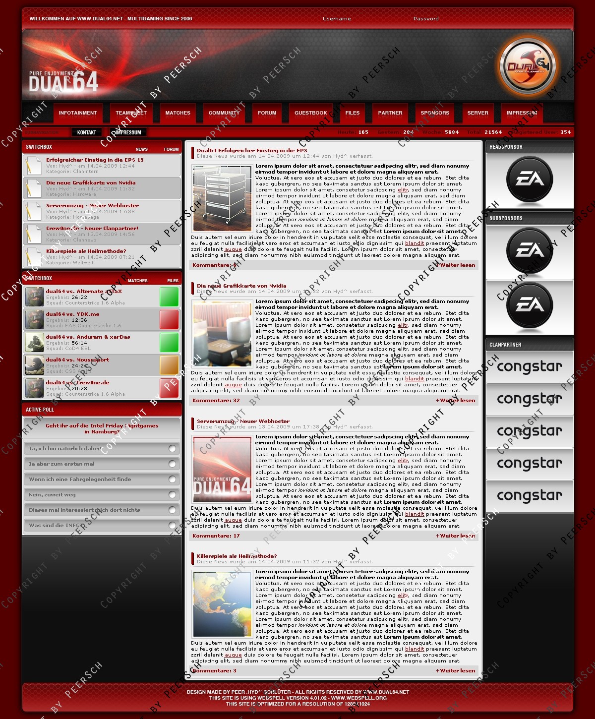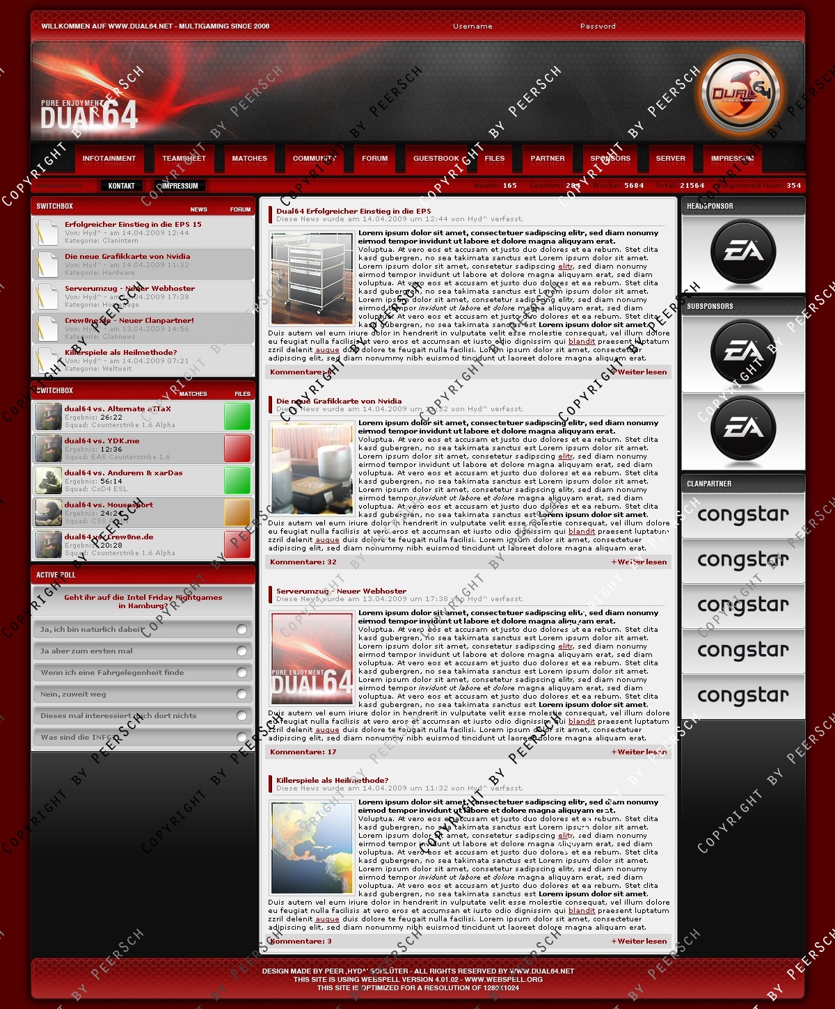 Dieses Template ist angepasst auf die Neuste Version des webSPELL CMS. Bei Fragen oder ähnlichem melden Sie sich doch bitte per Email bei mir; [email protected].
