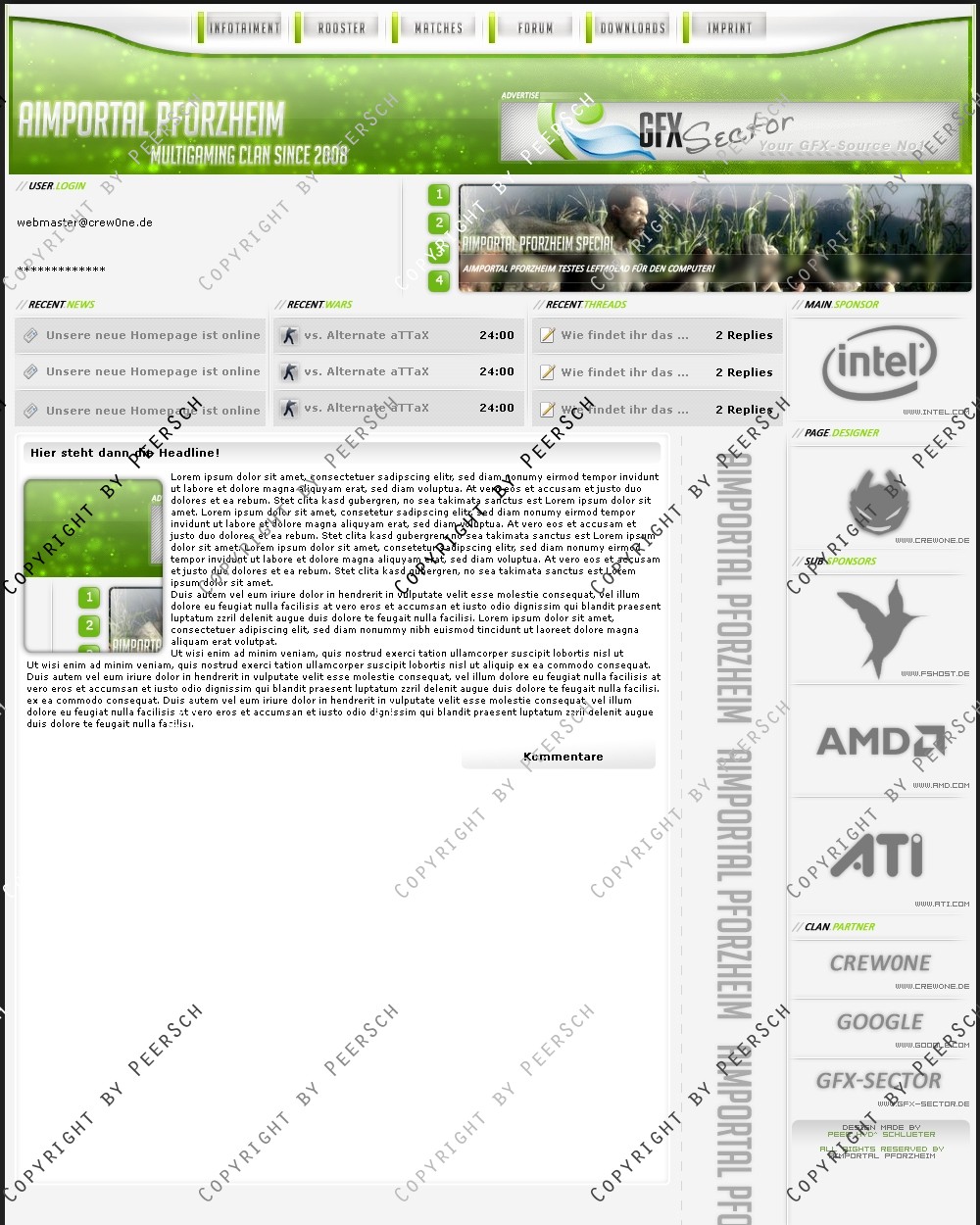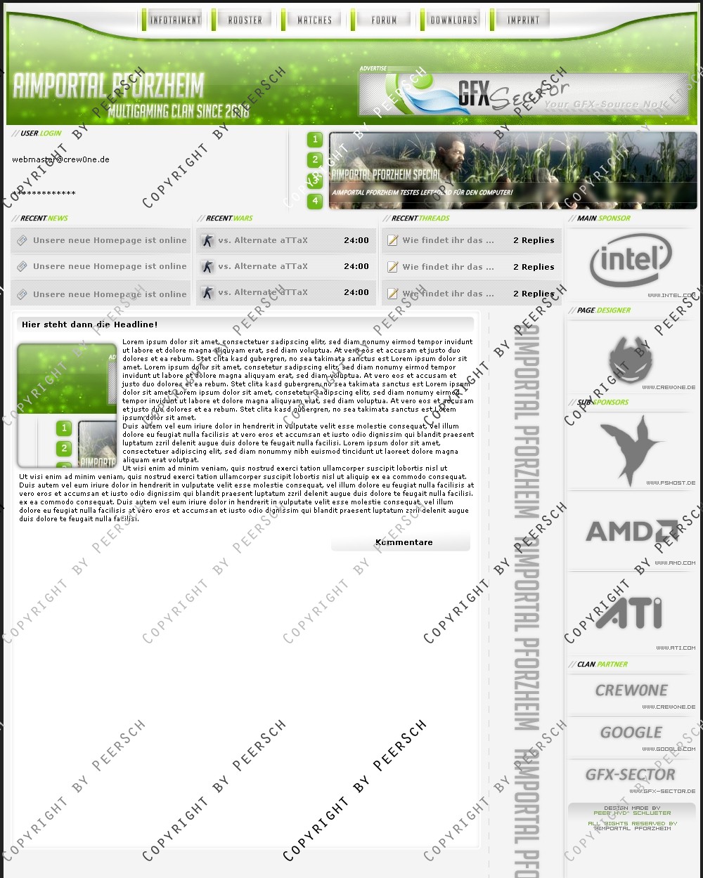 Dieses Template ist angepasst auf eine etwas ältere Version des webSPELL CMS. Bei Fragen oder ähnlichem melden Sie sich doch bitte per Email bei mir; [email protected].