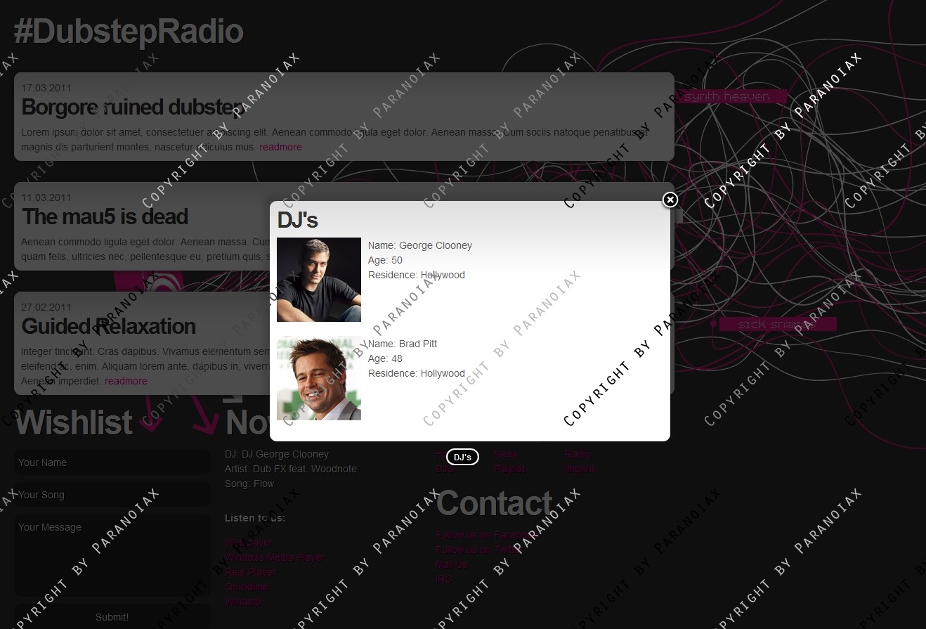 • Ajax Call für Radio, Dj's, Playlist und Imprint