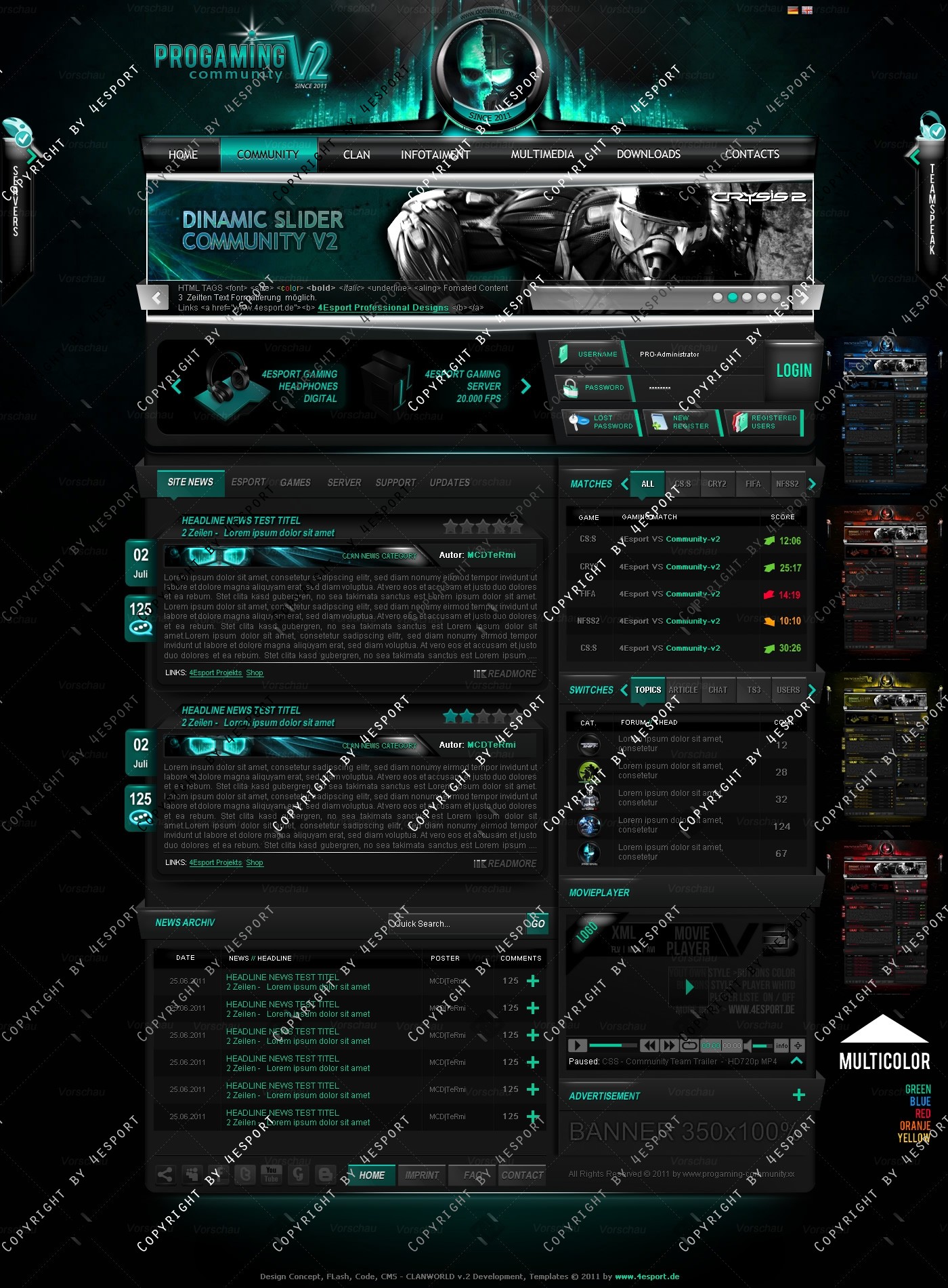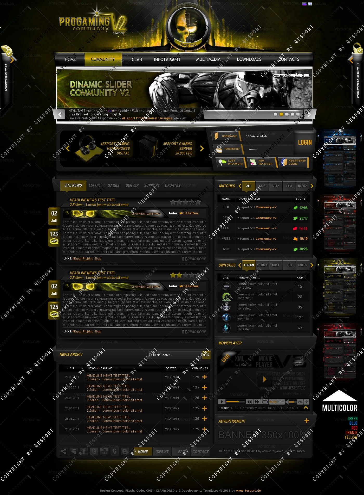 PROGaming Community V2 - Templates Premium Edition mit Flash Player 1 V3 Custom Edition und Featured System, CMS Erweiterung Webspell 4.2.2a, wird auf wünsch auf ClanWORLD v1.1 auch gecodet.