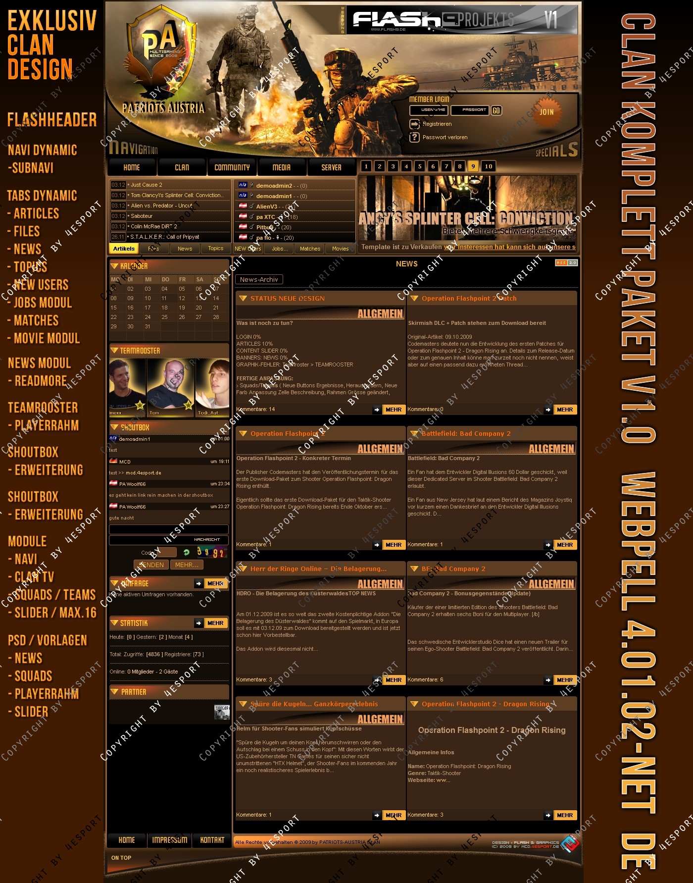 Design PSD Inkl. : News-Vorlage, Squads-Teams-Vorlage, Slider-vorlage, PA-Logo, Header- Links (hinter Logo der graphik)