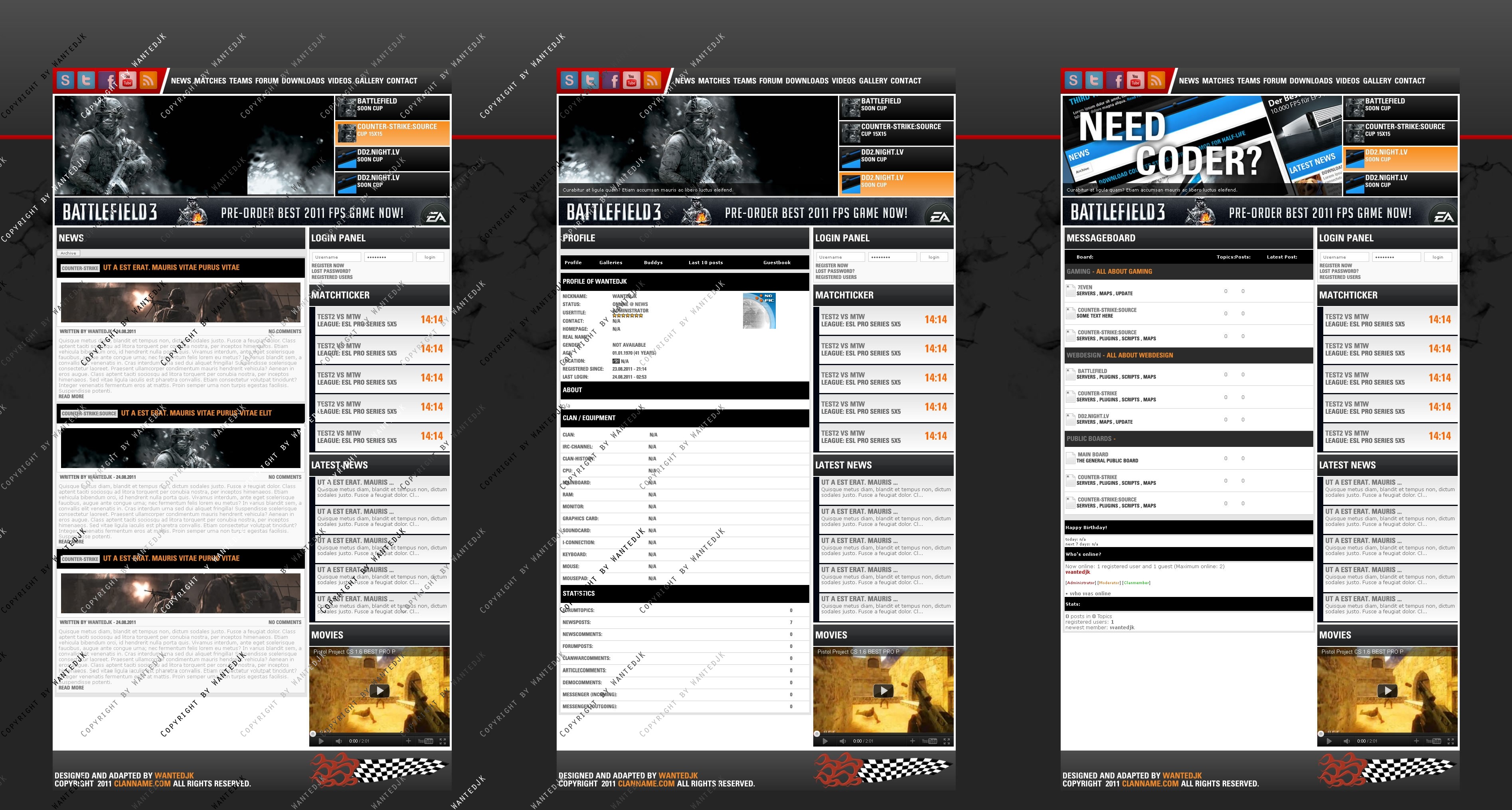 Include templates - News , Forum , Profile , Matches , Members
