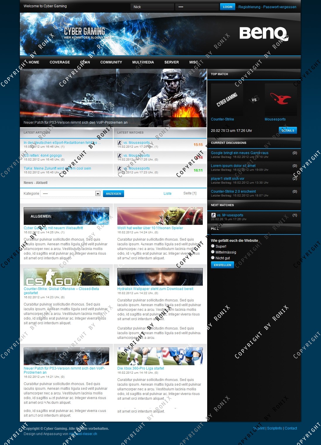 Das Cyber Gaming 01 Template zeichnet sich durch folgende Punkte aus: