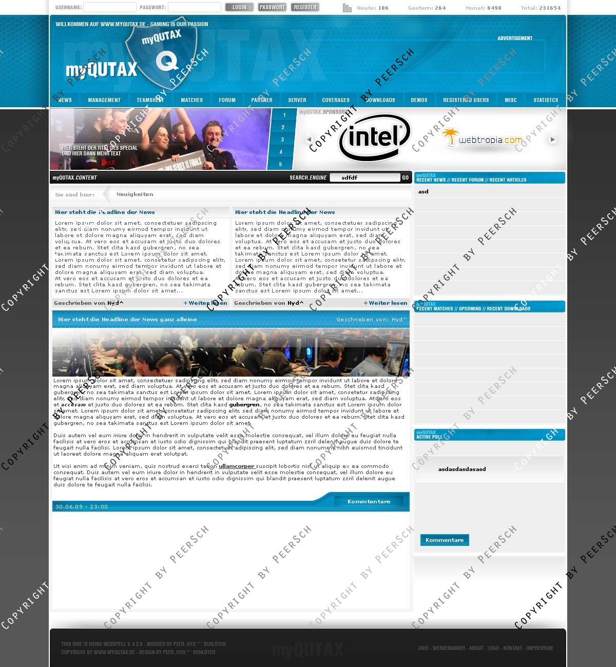 Das Template ist sehr übersichtlich gestaltet und modern. Zudem gibt es noch viele Extras beim Kauf! Das Template wurde auf webSPELL 4.2.* angepasst. Das bedeutet es ist mit jeder webSPELL version ab 4.2. aufwärtskompatibel.