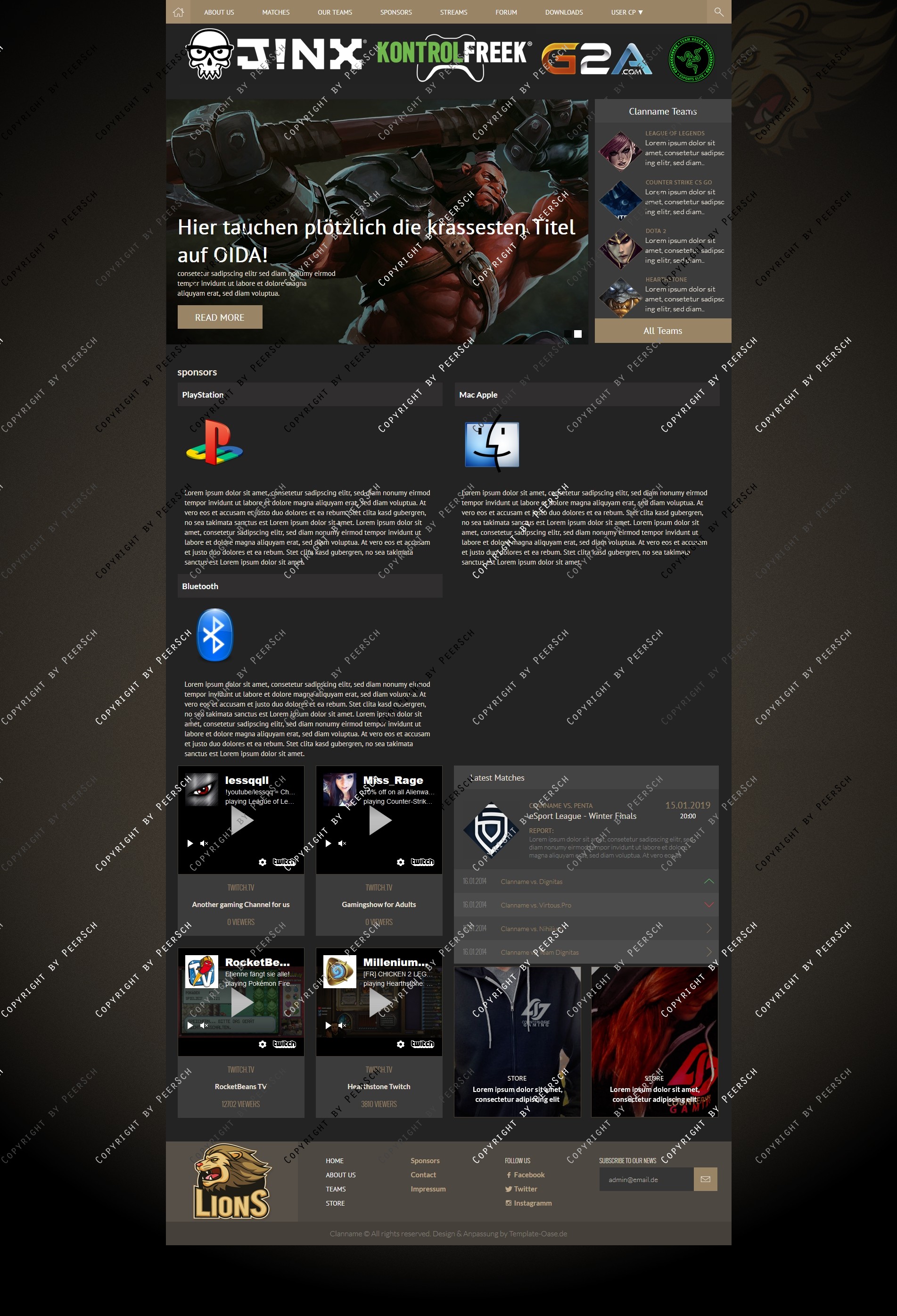 Im Preis mit inbegriffen sind außerdem die angepassten Unterseiten: Sponsoren, Squads, Squaddetail, News, Newscomments, Profil und Streams!